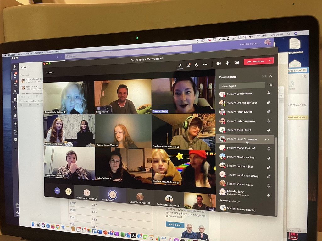 “Als leraar kon ik ‘s nachts niet stoppen met lachen. Voor mij is dit onderwijs op zijn best: intrinsiek gemotiveerde studenten, leergierig over de wereld en maak contact met andere mensen – met verschillende wereldbeelden en levens”, zegt Jansen. “Ik ben er absoluut zeker van dat ze zich over twintig jaar de Election Night 2020 zullen herinneren – thuis in hun slaapzak op de bank, tijdens een gekke wereldwijde pandemie, pratend met mensen aan de andere kant van de wereld alsof ze gewoon in de volgende kamer zijn.”