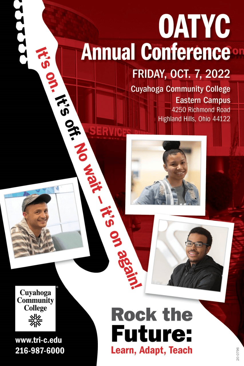 The link to registration for the 2022 OATYC Conference and hotel information for attendees is here. Registration is still open as long as space remains. Email OATYC2022@tri-c.edu with Inquiries. If you’re attending, below is a link with directions to the Tri-C Eastern Campus in Highland Hills, which is less than a mile from the Harvard Avenue exit off Interstate 271.