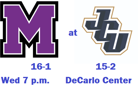 The No. 3-ranked Mount Union University’s Purple Raiders, 16-1, 9-1 in the Ohio Athletic Conference (OAC) travel to No. 8-ranked John Carroll University, 15-2, also 9-1 in OAC, in a major NCAA DIII hoops clash on Wednesday at 7 p.m. Mount Union edged the Blue Streaks 75-72 when these two teams last met, on December 7 in Alliance.