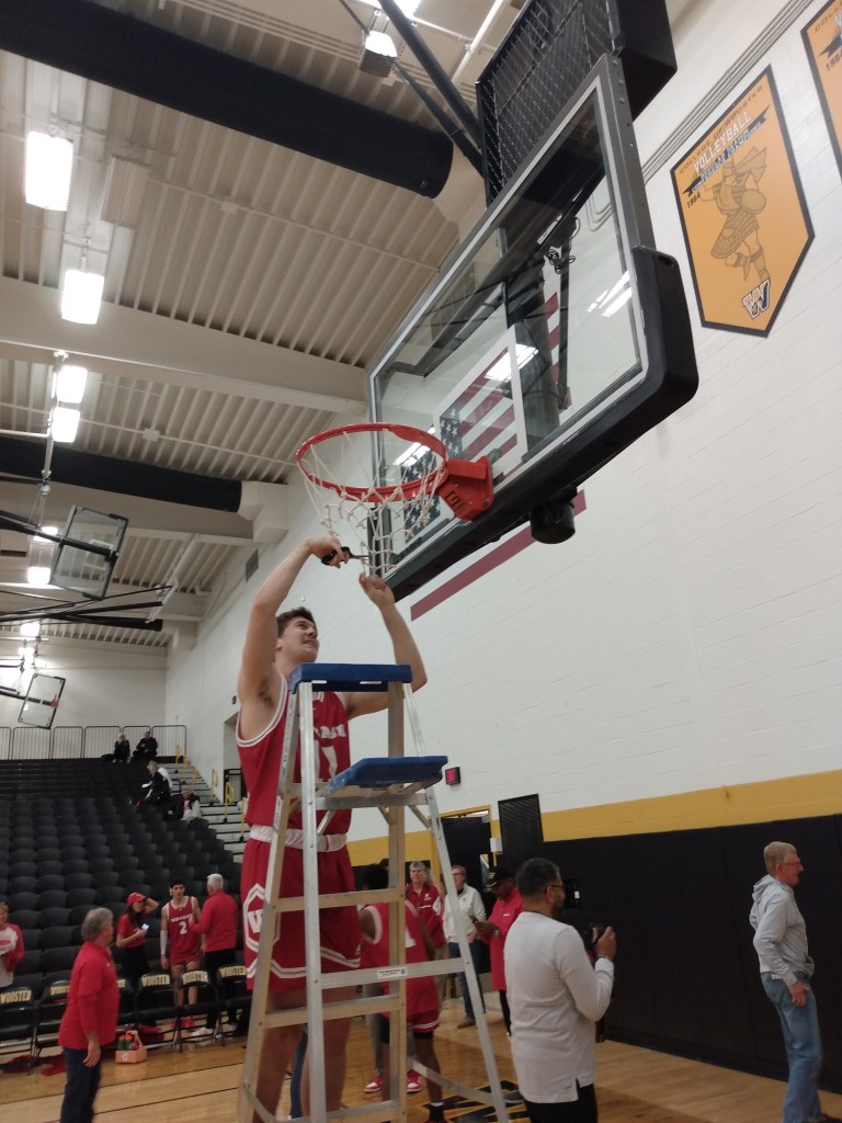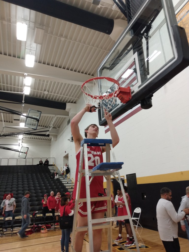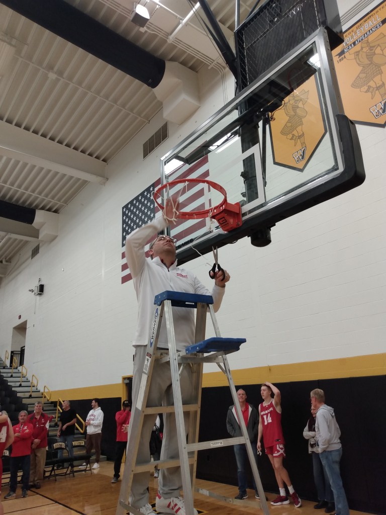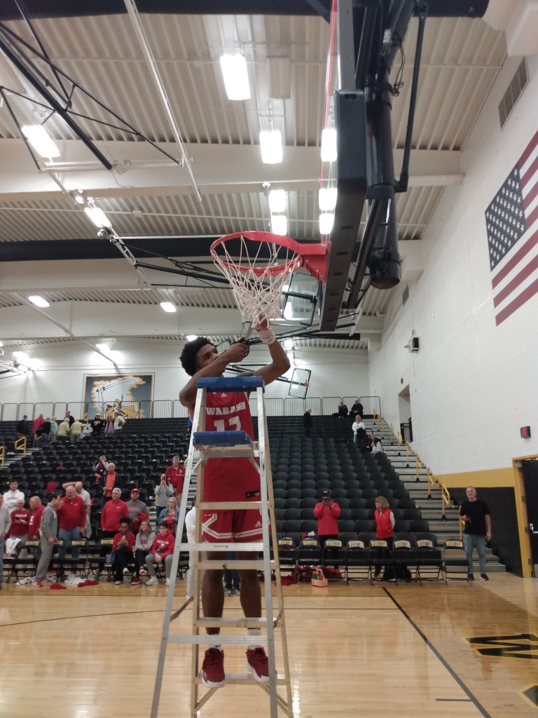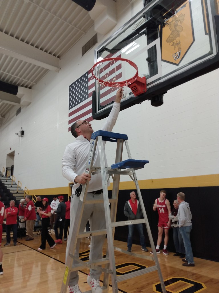 PHOTO GALLERY FROM CUTTING THE NETS AFTER WABASH’S 81-80 VICTORY OVER WOOSTER IN THE NCAC CHAMPINSHIP GAME, FEBRUARY 25, 2023