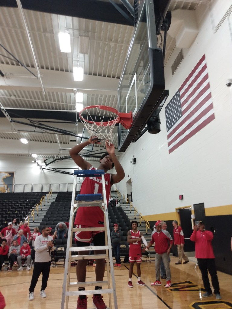 Coming out of intermission, at first the battle was like the game’s opening in reverse. Turner Kurt — the player whose 3-point dagger defeated Wabash a week ago — Elijah Meredith and Jamir Billings all hit baskets and the game was tied 50-all at the 17:56 mark. Wabash responded with a 15-3 spurt, with key baskets coming from Ahmoni Jones, Champ McCorkle, and Edreece Redmond.
