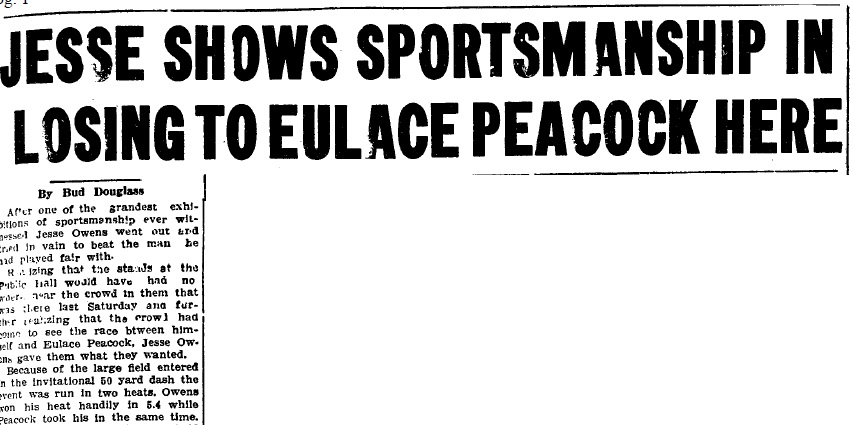 “This was to have been Owens’s show,” wrote the New York Times’ sports reporter Arthur Daley, “…and Peacock took the play right away from him.” “Peacock, like Owens, is only a sophomore and has his best years ahead of him. He is physically stronger than Jesse,” added Braven Dyer, sportswriter for the Los Angeles Times.