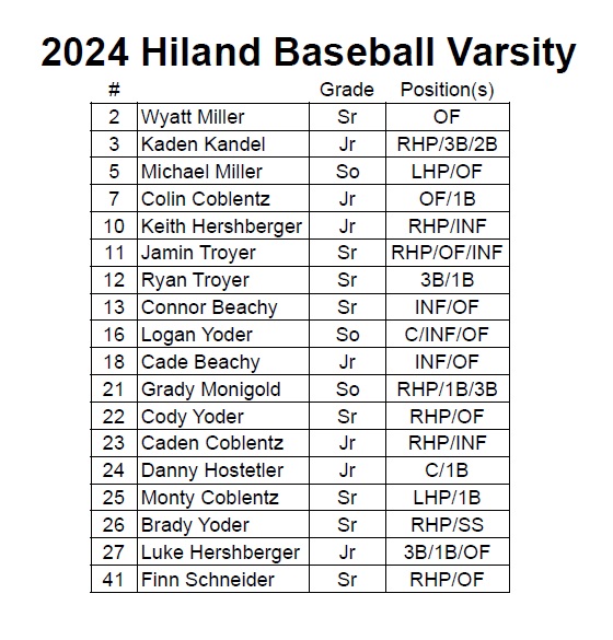 Dages and the coaching staff have the Hawks playing a difficult schedule this spring, one that’s aimed at improving the team as District tournament time approaches. Hiland has a doubleheader scheduled against 2023 OHSAA Division II state champion Kenston on March 30. It will oppose Division I Louisville on April 9, and will oppose Lake Center Christian at Canal Park on April 13. Neighboring Waynedale, OHSAA Division II state champion, visits Berlin on May 3.