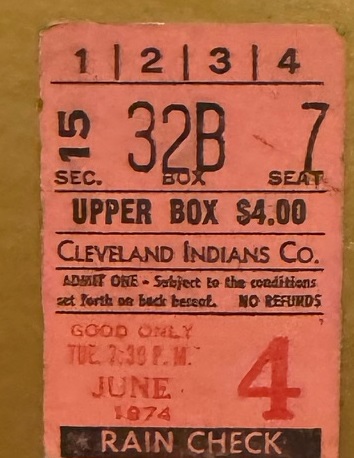 We were playing the Texas Rangers and although there had previously been a bench-clearing incident the last time the two teams met in Texas, I didn’t think it was a big deal, but then again, I wasn’t on the field either. I look back now on all the players on the Texas team who became part of Cleveland Indians history, including of course, Mike Hargrove, Toby Harrah and Billy Martin! I remember the crowd was fairly large for a weeknight and I have since looked it up online and apparently the crowd was about 25,000 fans who consumed 60,000 cups of beer!
