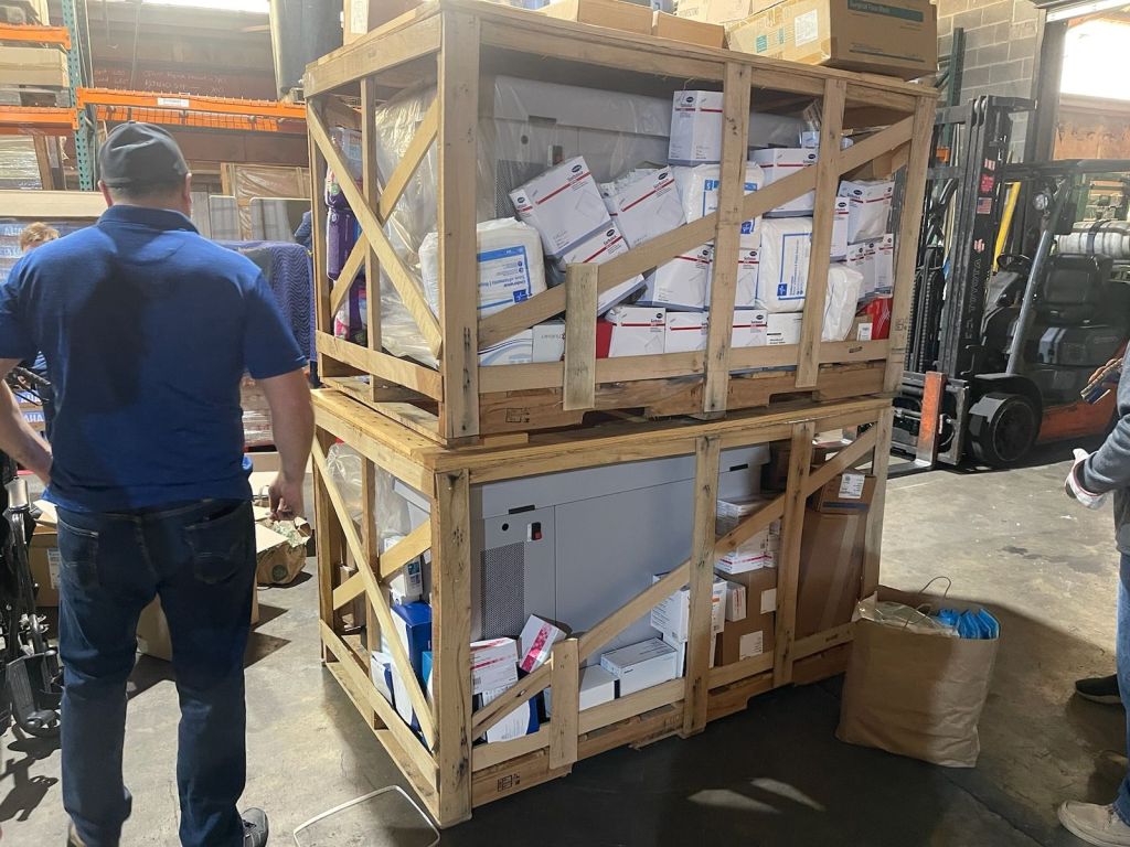 SFGC uses relief funds to purchase first aid supplies, hygiene products, and additional food. It also purchased and shipped small portable generators to help provide power once the Russians began targeting Ukraine’s power plants. All the donated and purchased goods are loaded high onto pallets, covered in protective stretch wrap plastic, then loaded into the shipping container for transoceanic shipment (see photos above and video below).