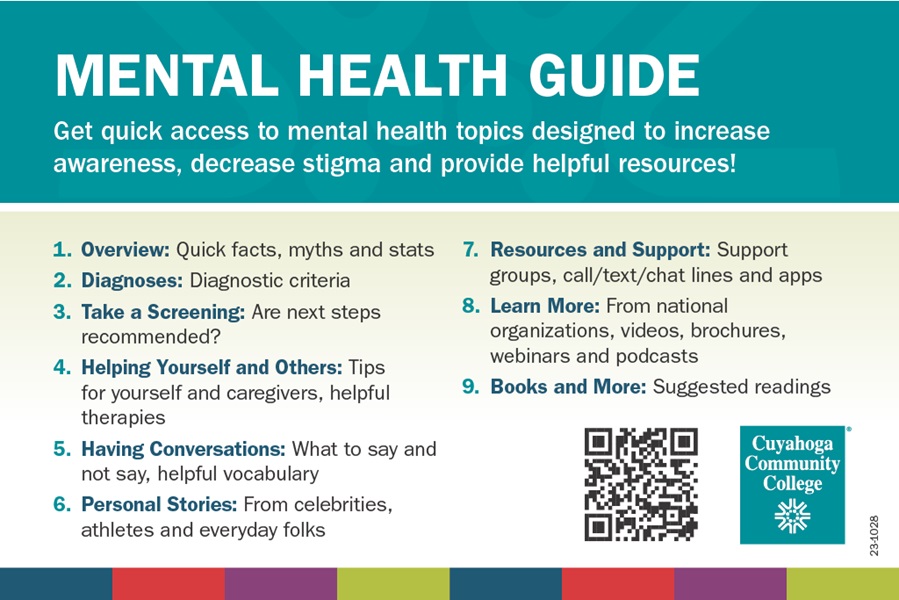 Tri-C has produced a Mental Health Guide for students and others in the college community. Students can use the Mental Guide to learn about: