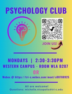 Students can deepen their understanding of psychology by attending a meeting virtually or at the Western Campus in room WLA B207 on Mondays from 2:30 – 3:30 p.m.