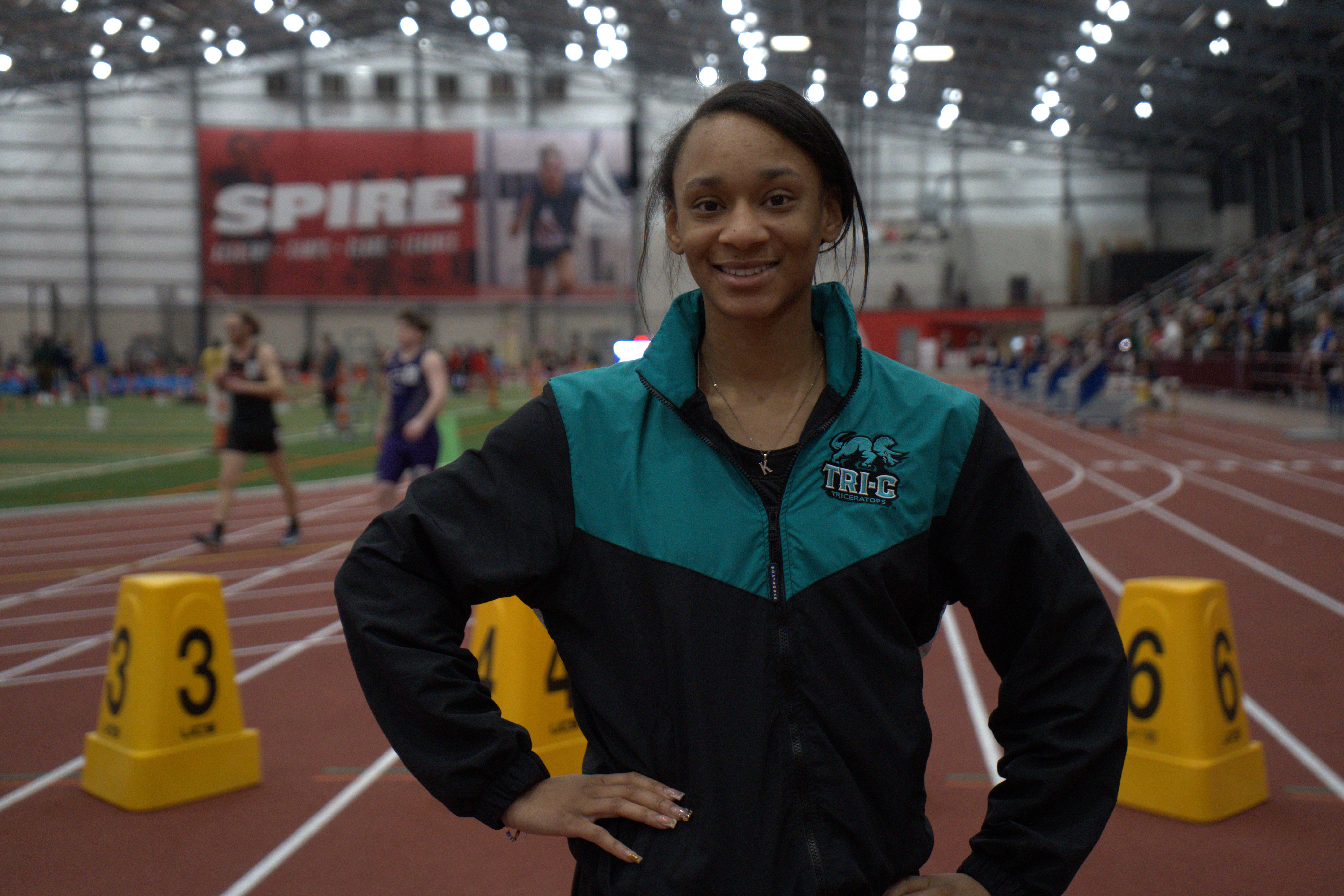 McGill then set a third a Tri-C record in the 60-meter dash with a 7.72 time and a 2nd place finish in the preliminaries at the Collegiate Indoor Games on February 15 at SPIRE in Geneva, Ohio. She placed third in the finals. Along with her Tri-C teammates, McGill was competing against many four-year college tracksters in these three meets.