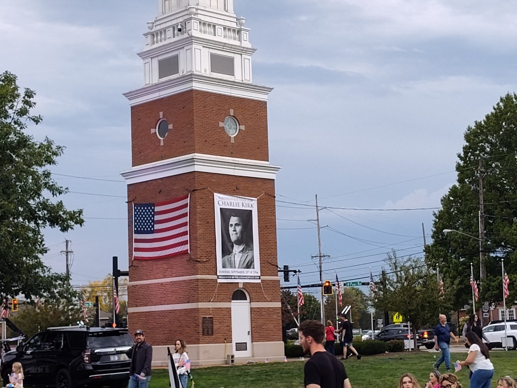 STRONGVILLE, SEPT. 21 — Braving the rain and sitting on the ground or in lawn chairs, thousands of Northeast Ohioans gathered at Strongsville Commons in one of Cleveland’s largest suburbs to honor the memory of Charlie Kirk Sunday night.
