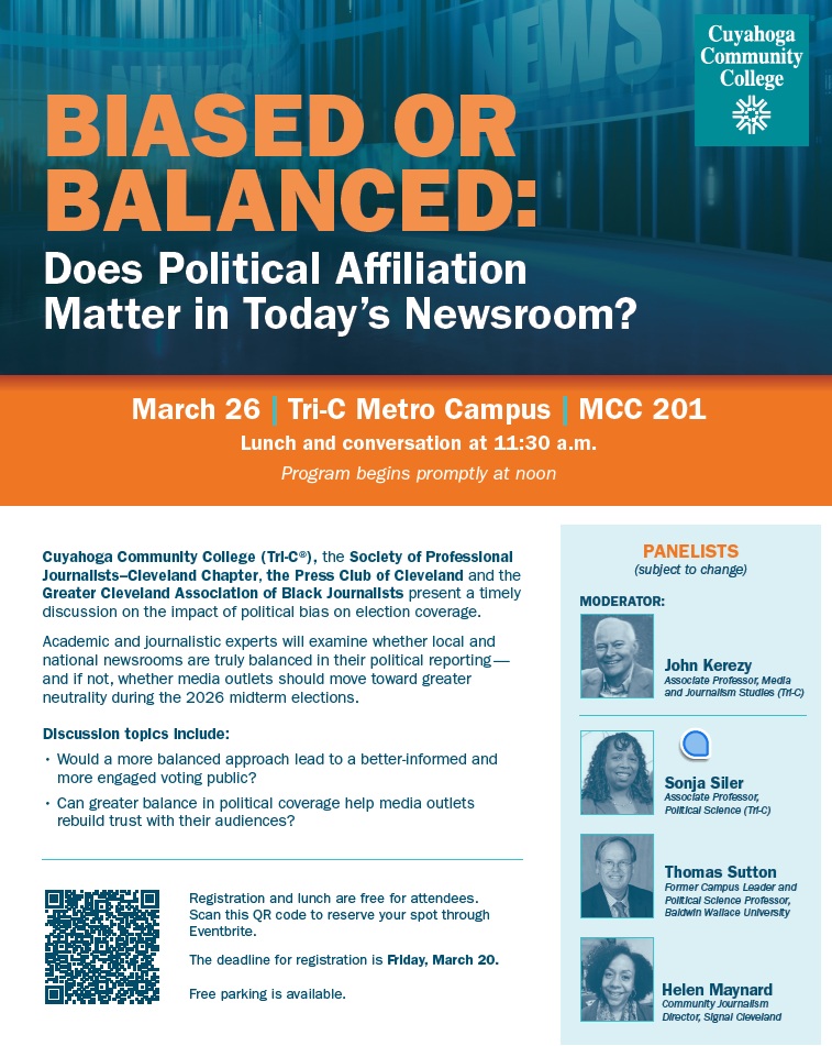 Cleveland SPJ and Tri-C have assembled a group of panelists who will address this issue. They include: